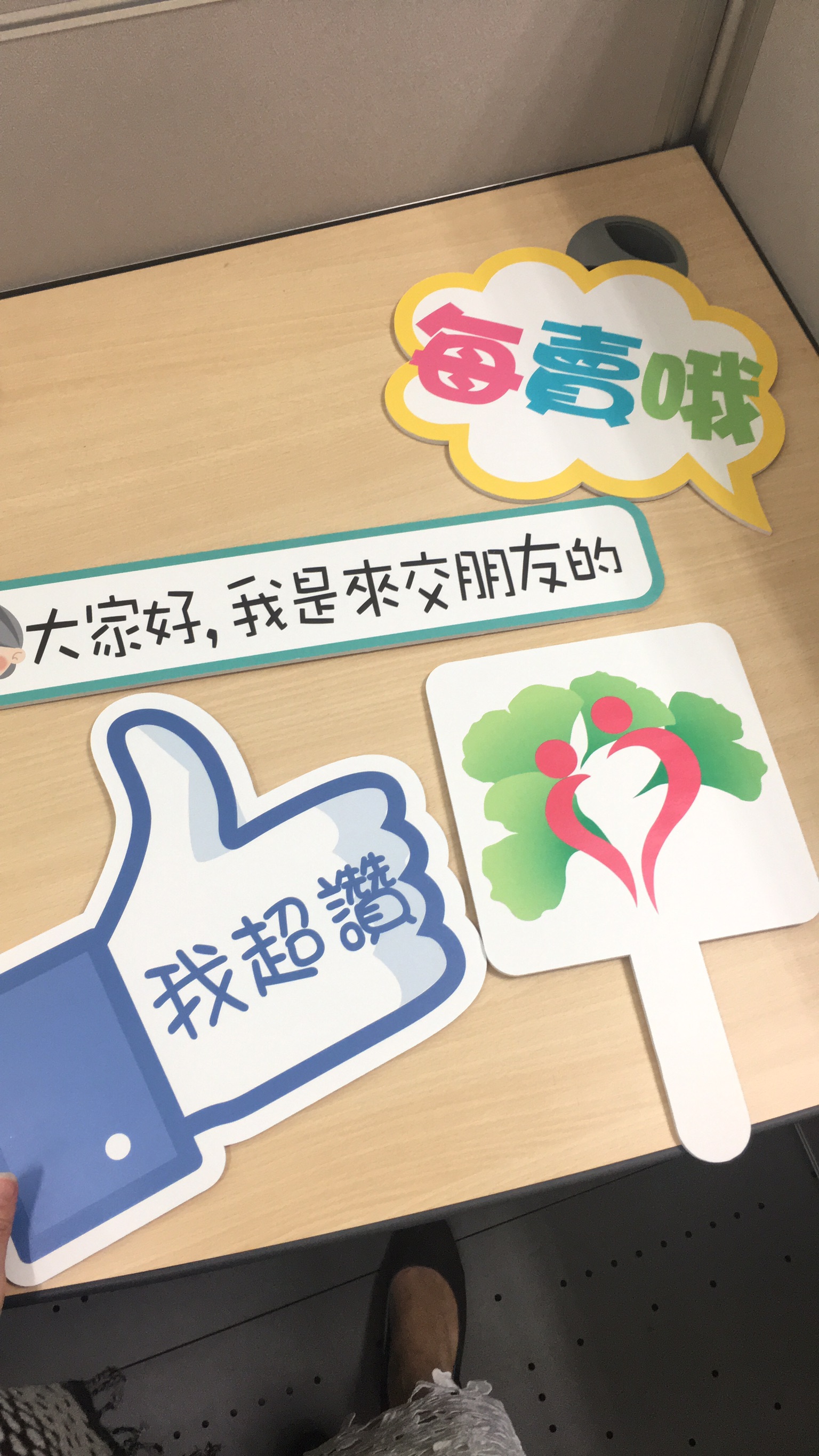 銀髮健康照顧協會準備可愛的手板讓長輩拍照打卡(照片提供:銀髮健康照顧協會)